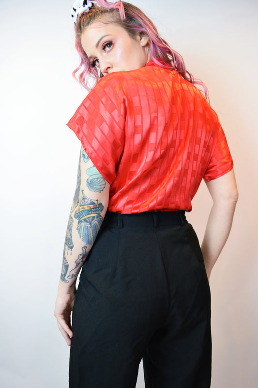 Sold out90s IRIDESCENT RED BLOUSE - M/L