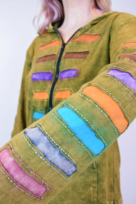 Sold out90s PATCHWORK ZIP UP HOODIE - M