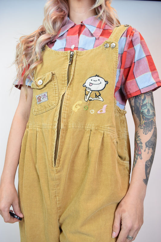 NEW AGE EMBROIDERED CORDOROUY OVERALLS - MEDIUM