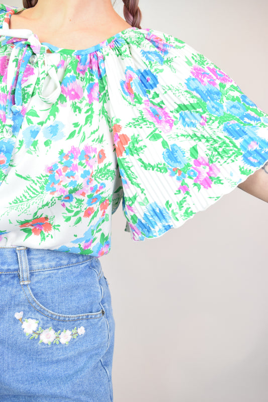 RAINBOW FLORAL 70S ACCORDION BLOUSE - MEDIUM