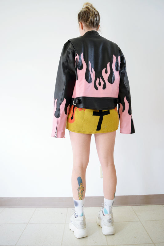 Sold outPINK FLAME PLEATHER JACKET - S/M