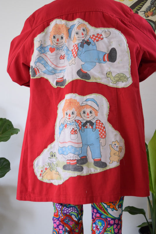 Raggedy Anne Upcycled Red Denim Jacket XL/XXL