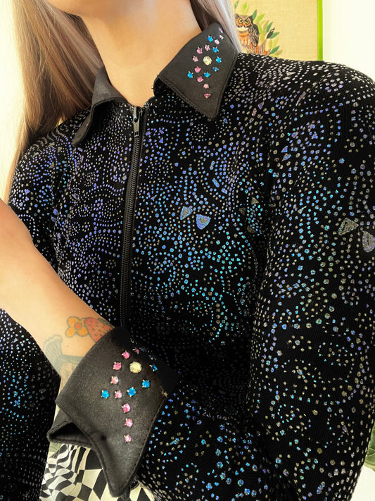 Rhinestone Cowgirl Holographic Zip Up - XXS/XS