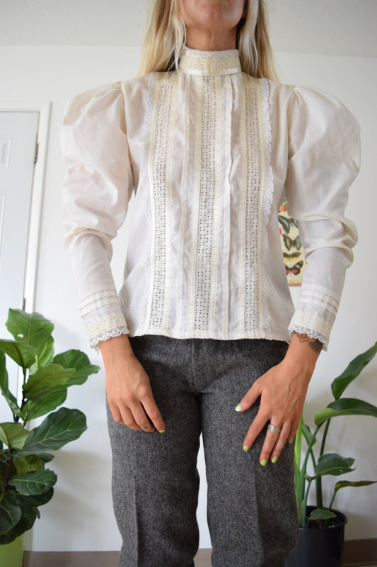 70s GUNNE SAX white cotton eyelet renaissance style Maxi Dress
