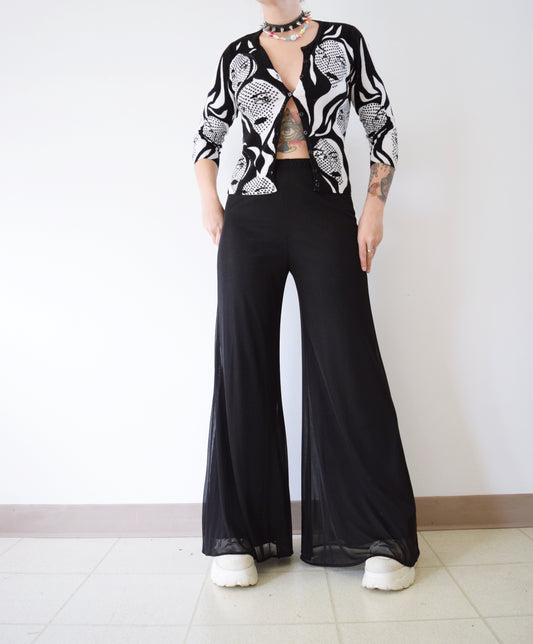 Y2K BLACK MESH BELLBOTTOMS - 24-30" WAIST