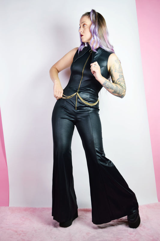 70s PLEATHER BELL BOTTOM JUMPSUIT - SMALL
