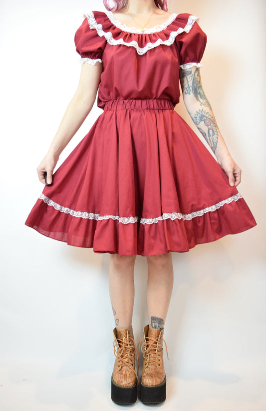 Sold out70s RED SQUARE DANCE SET - SMALL