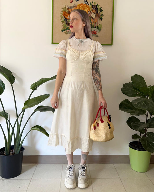 50s Blue Gingham Picnic Jumper Midi Dress - XS/S