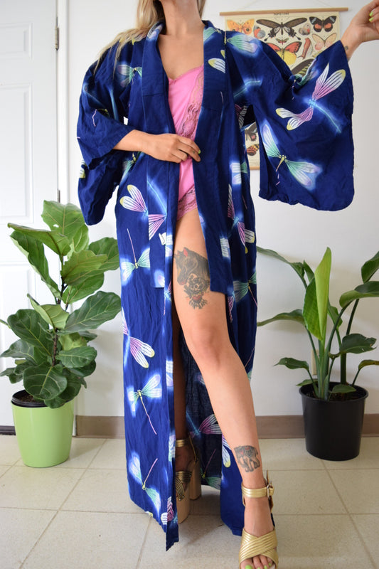 Vtg Dragonfly Kimono Style Robe - L/XL