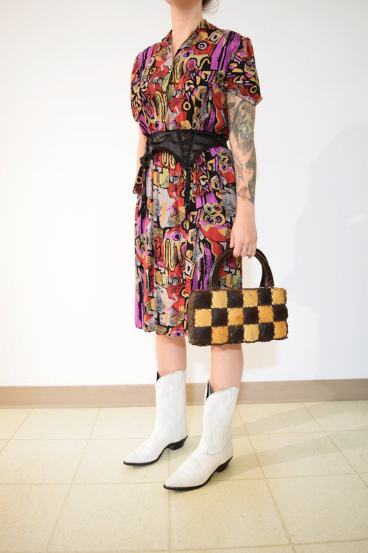 Sold out80s ABSTRACT MIDI DRESS - Small