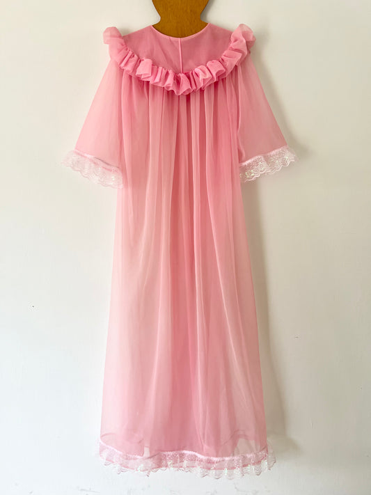 Reworked 1960s Bubblegum Pink Peignoir Duster