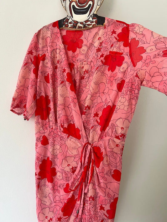 Y2K Does 70s Floral Pop Art Asymmetrical Midi Dress - M