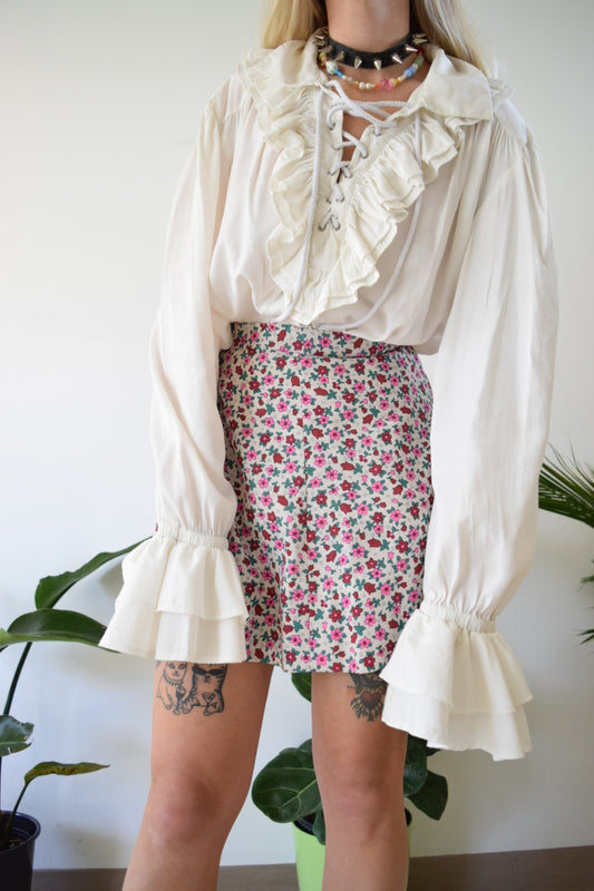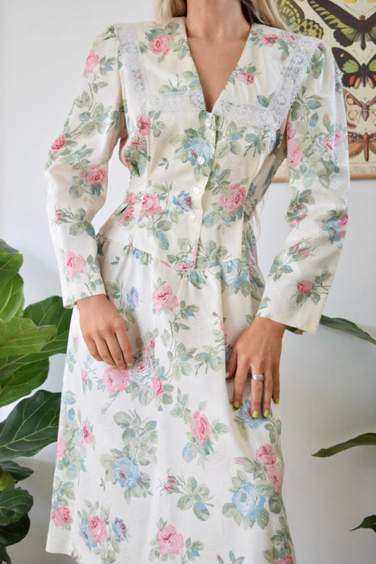70s Pastel Floral Lace Collar Midi Dress - Medium