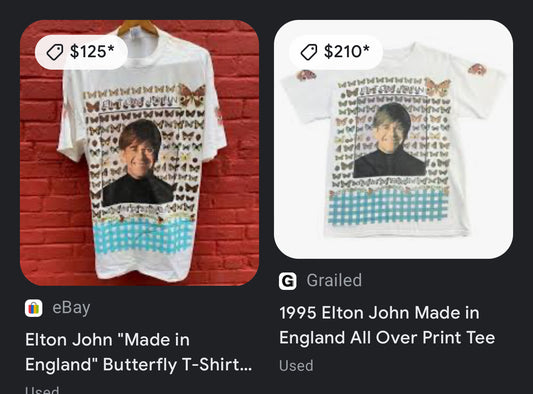 RARE 1995 ELTON JOHN BUTTERFLY TSHIRT