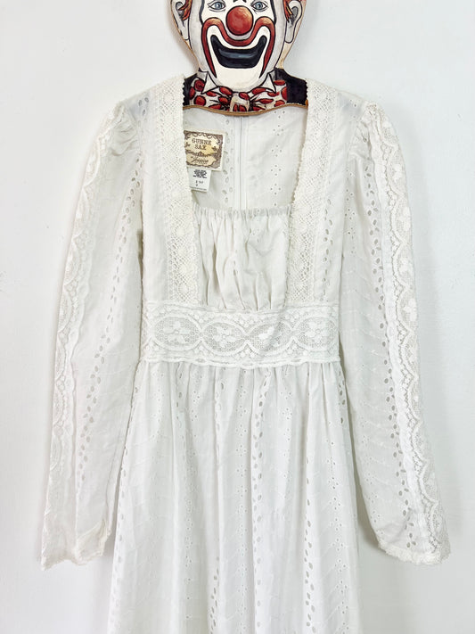 70s GUNNE SAX white cotton eyelet renaissance style Maxi Dress