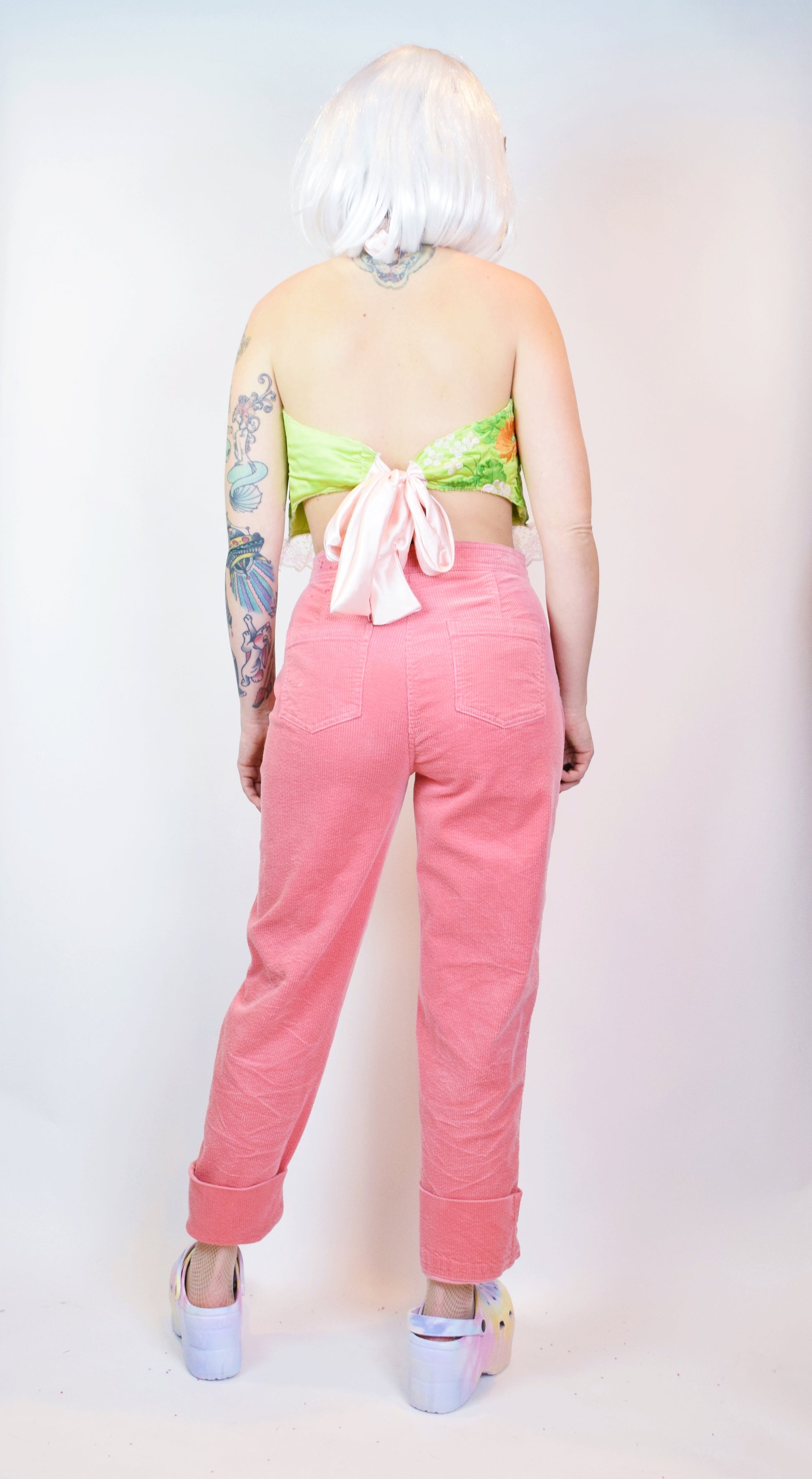 š§āāļøšāØ GORGEOUS quilted and embroidered halter top handmade by ME completely out of second hand materials and fabrics. Bodice made from a vintage quilt from the 60s/70s. Flowers embroidered all over. Quilted texture. Thicker fabric. Halter ties around neck and back with baby pink silky fabric. Lined with lime green lace on top and holographic white lace on bottom. Cropped fit but full coverage over bust area. In great vintage condition!
